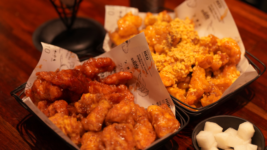 1 つのメニューにチキンが 20 個近く入っているので、ハーフ & ハーフがおすすめです。