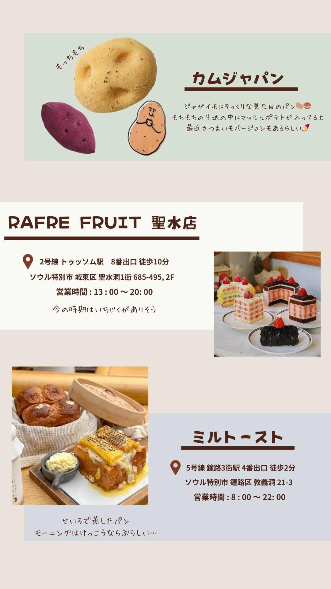 他にもソウルにはカムジャパンと呼ばれるパンやお洒落なカフェが沢山あります。
